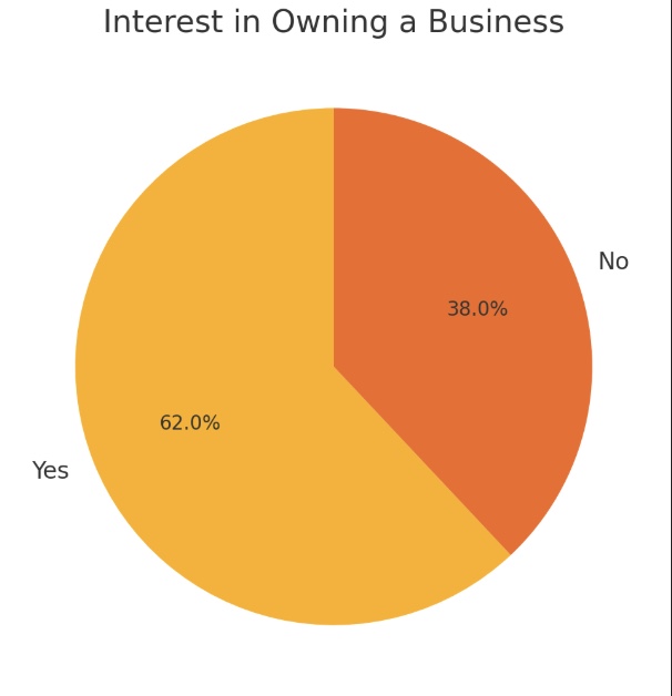 - Entrepreneurial interest: A significant 62% expressed interest in owning a business, indicating the program may be fostering entrepreneurial spirit.