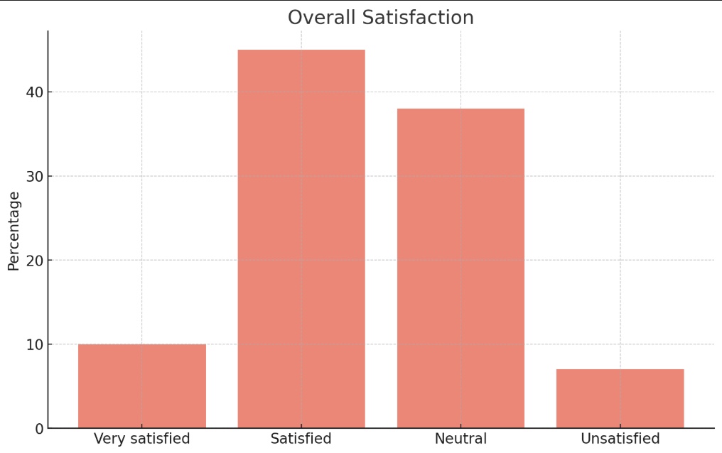 Bar chart showing satisfaction levels, with 45% reporting "Satisfied."