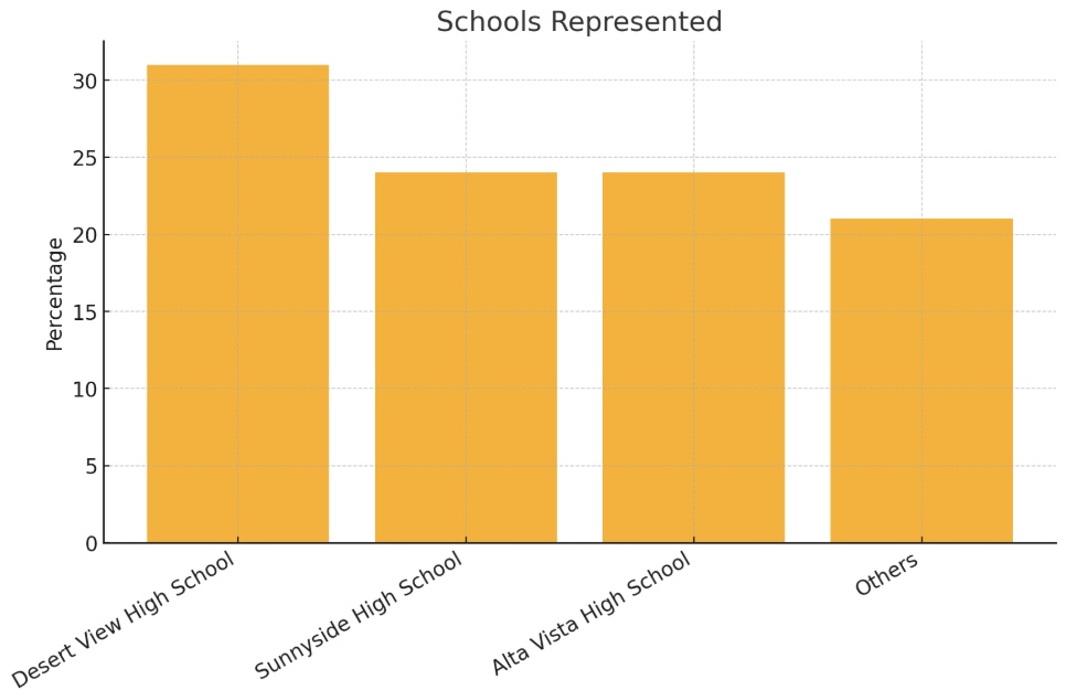 Bar chart of student representation across Desert View, Sunnyside, Alta Vista, and other schools (in Mexico).