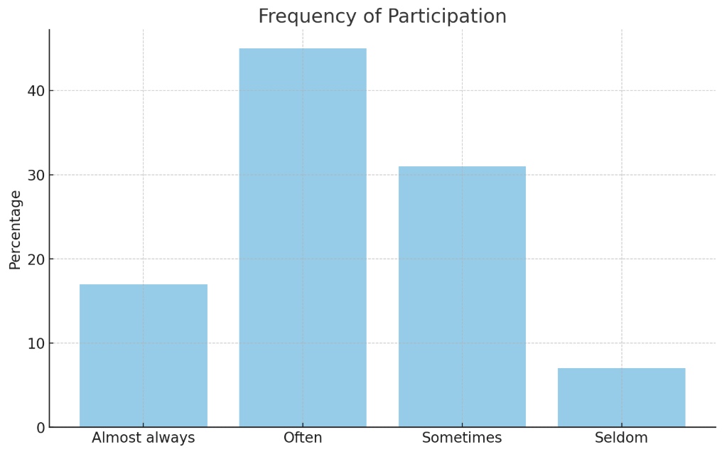 Bar chart illustrating how often students participated (e.g., “Often” was most common at 45%).