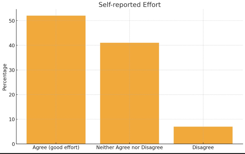 - Strong effort: 52% of students agreed they put in good effort, showing commitment to learning.